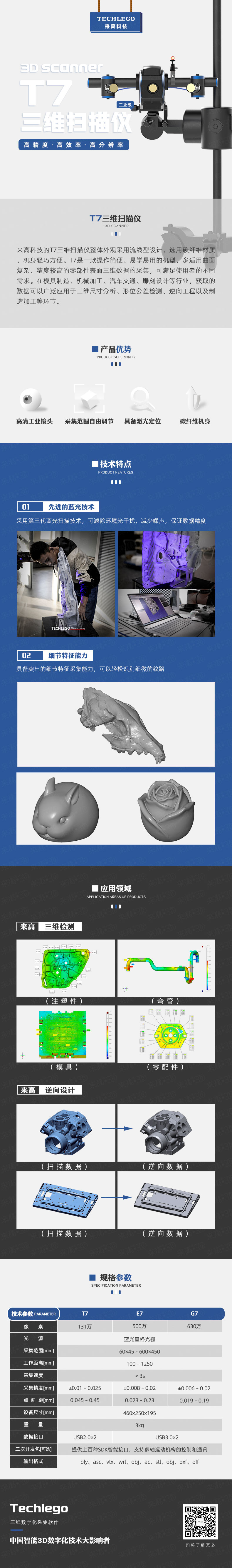 來(lái)高科技的T7三維掃描儀整體外觀采用流線(xiàn)型設(shè)計(jì),選用碳纖維材質(zhì),機(jī)身輕巧方便。T7是一款操作簡(jiǎn)便、易學(xué)易用的機(jī)型,多適用曲面復(fù)雜、精度較高的零部件表面三維數(shù)據(jù)的采集,可滿(mǎn)足使用者的不同需求。在模具制造、機(jī)械加工、汽車(chē)交通、雕刻設(shè)計(jì)等行業(yè),獲取的數(shù)據(jù)可以廣泛應(yīng)用于三維尺寸分析、形位公差檢測(cè)、逆向工程以及制造加工等環(huán)節(jié)。