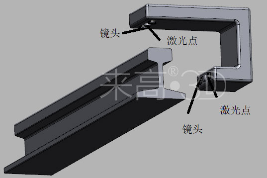 產(chǎn)品訴求:軌道長30m,表面反光,需要分析軌道的走勢軌跡,精度誤差0.5mm,實現(xiàn)軌跡分析與軌道熱處理同步進行,熱處理包括軌道的頂部和內側面。
