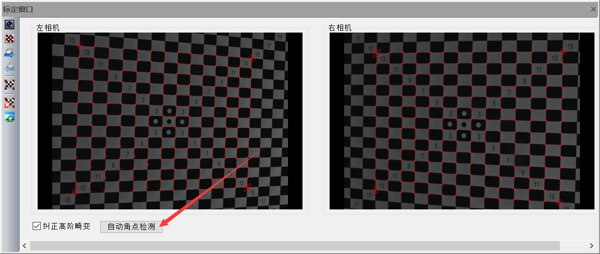 自動標定:只需拍完標定照片,角點和網格自動捕捉,只需點擊自動角點檢測即可。