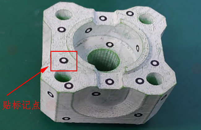 采用拍照式3D掃描儀,因其具有“高精度、高效率、高分辨率”等特點。然后對被測零件進行噴粉處理,再貼上標記點。