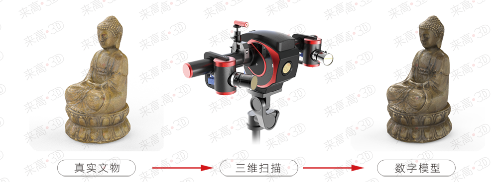 隨著最近幾年虛擬現實技術的快速發展,許多博物館、電子商務網站以及其他宣傳平臺大多采用VR、AR、幻影成像以及裸眼3D等數字化技術進行文物或者產品展示。通過三維掃描儀可以得到高細節、高質量單色三維模型或者彩色三維模型,使虛擬現實技術更完善、更接近真實的進行展示。