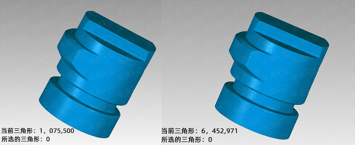 通過圖片可以看出網格細化可以提高網格的表面質量細節。網格細化僅僅提高細節,對于精度是沒有提升效果的。所以在選擇三維掃描儀的時候要根據精度需求進行合理的選擇。
