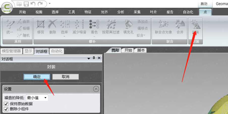 01.上下頜點(diǎn)云進(jìn)行封裝【點(diǎn)→封裝→確定】