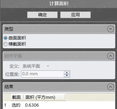 02.計(jì)算下頜牙列模型總面積Stotal,將下頜牙列數(shù)據(jù)全部選擇后計(jì)算面積【分析→計(jì)算→計(jì)算面積】