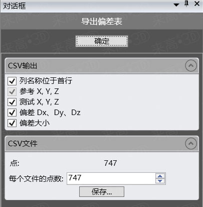 01.3D比較后,導(dǎo)出偏差表【結(jié)果→導(dǎo)出偏差表】,對(duì)話框中的點(diǎn)數(shù)就是在咬合閾值范圍內(nèi)的所有點(diǎn)數(shù)Ntotal,如圖: