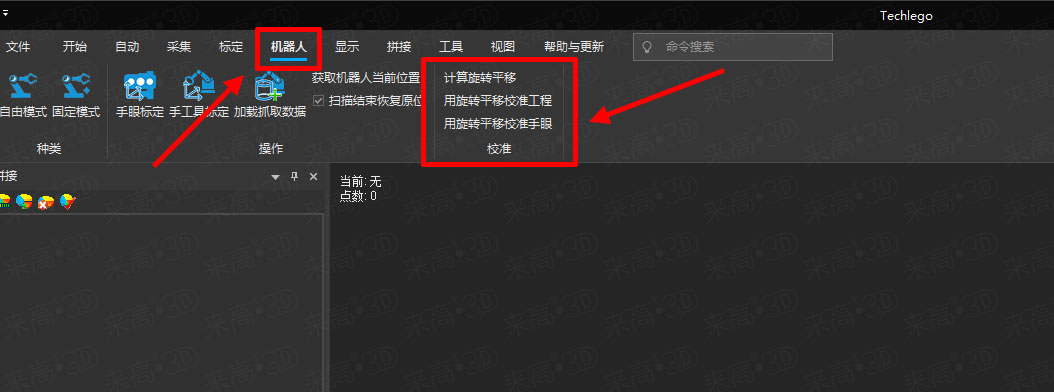 Techlego三維掃描儀針對(duì)上面的問題,提出了具有開創(chuàng)性地“一次標(biāo)定,多次校準(zhǔn)”的解決方案。在新版本techlego三維掃描儀軟件中已經(jīng)支持該功能(該項(xiàng)功能位于軟件的機(jī)器人選項(xiàng)卡內(nèi))。