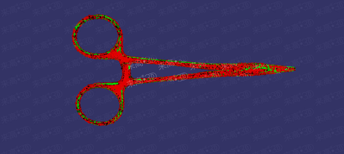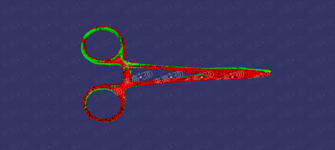 剪子具有高度對(duì)稱性,很容易特征誤識(shí)別,模板數(shù)據(jù)與當(dāng)前三維點(diǎn)云數(shù)據(jù)在匹配時(shí)很難完全貼合。為了進(jìn)一步提升匹配效果,可以勾選特征拼接修正選項(xiàng),在初步匹配之后進(jìn)一步修正。
