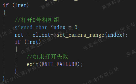 若相機未開啟,則調用set_camera_range函數打開相機組;若相機組已經開啟則切換到指定的相機組,其函數原型如下: