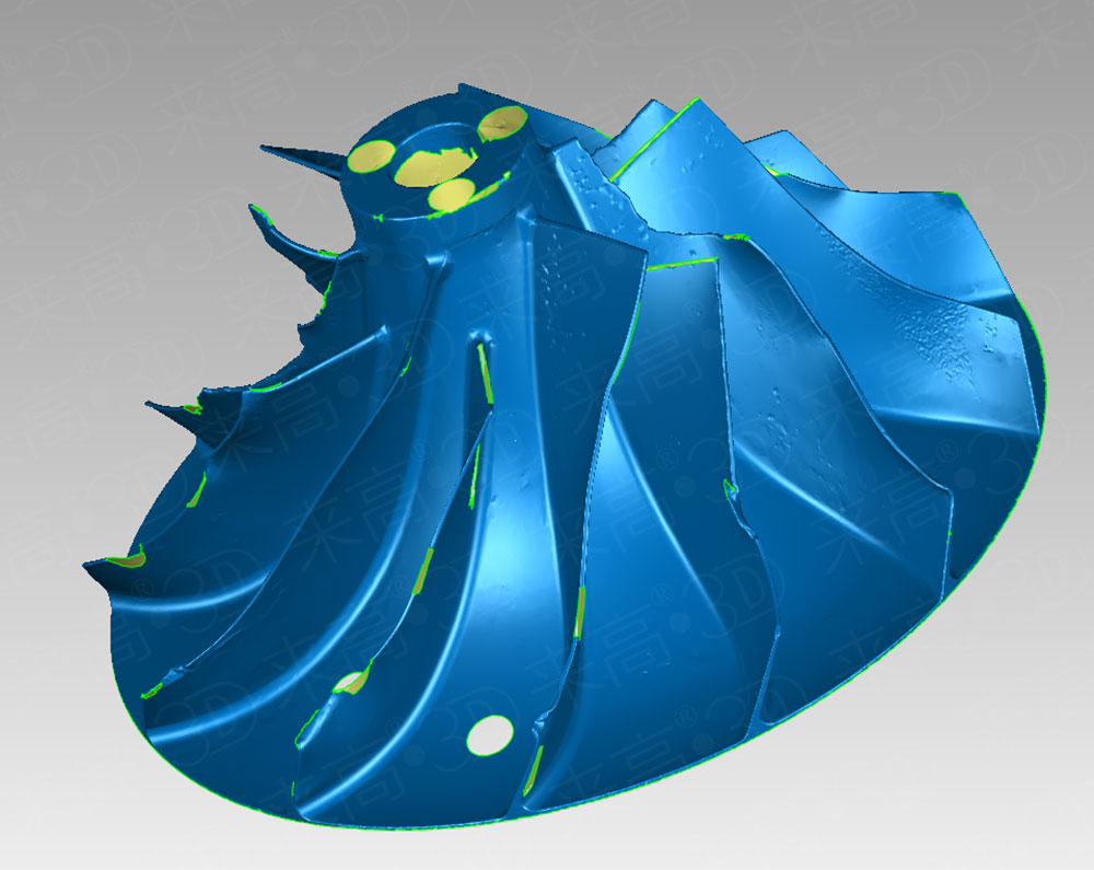 通過(guò)來(lái)高科技的三維掃描儀,掃描實(shí)物受損葉輪,得到點(diǎn)云數(shù)據(jù);