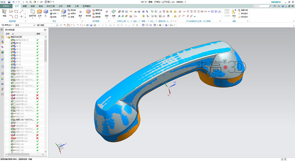 使用三維掃描儀采集三維點云數(shù)據(jù) → 使用點云處理軟件進行封裝 → 導(dǎo)入三維建模軟件進行逆向建模。