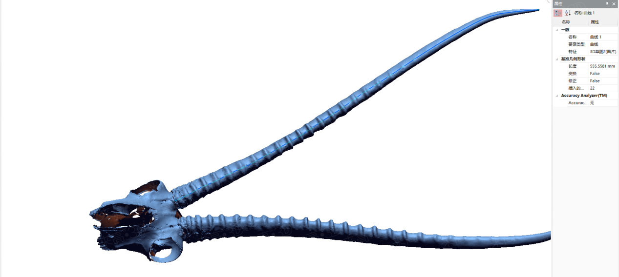 三維掃描儀具有非常強的上點能力,對于羊角等骨骼及角質類的掃描無需噴涂顯像劑,避免造成二次破壞,同時很大程度上縮短了數據的獲取時間。