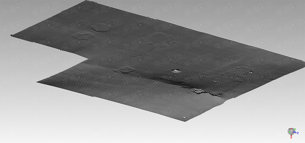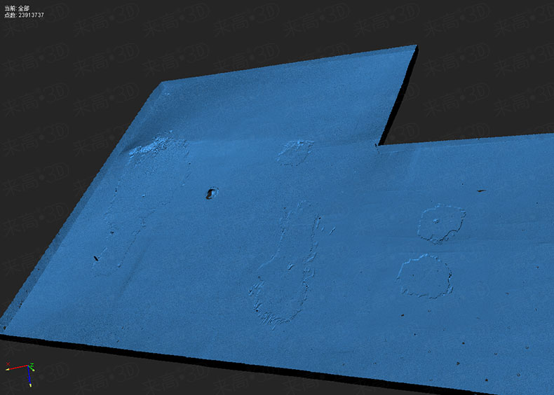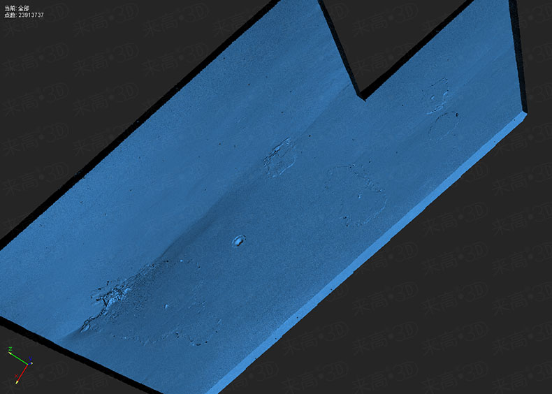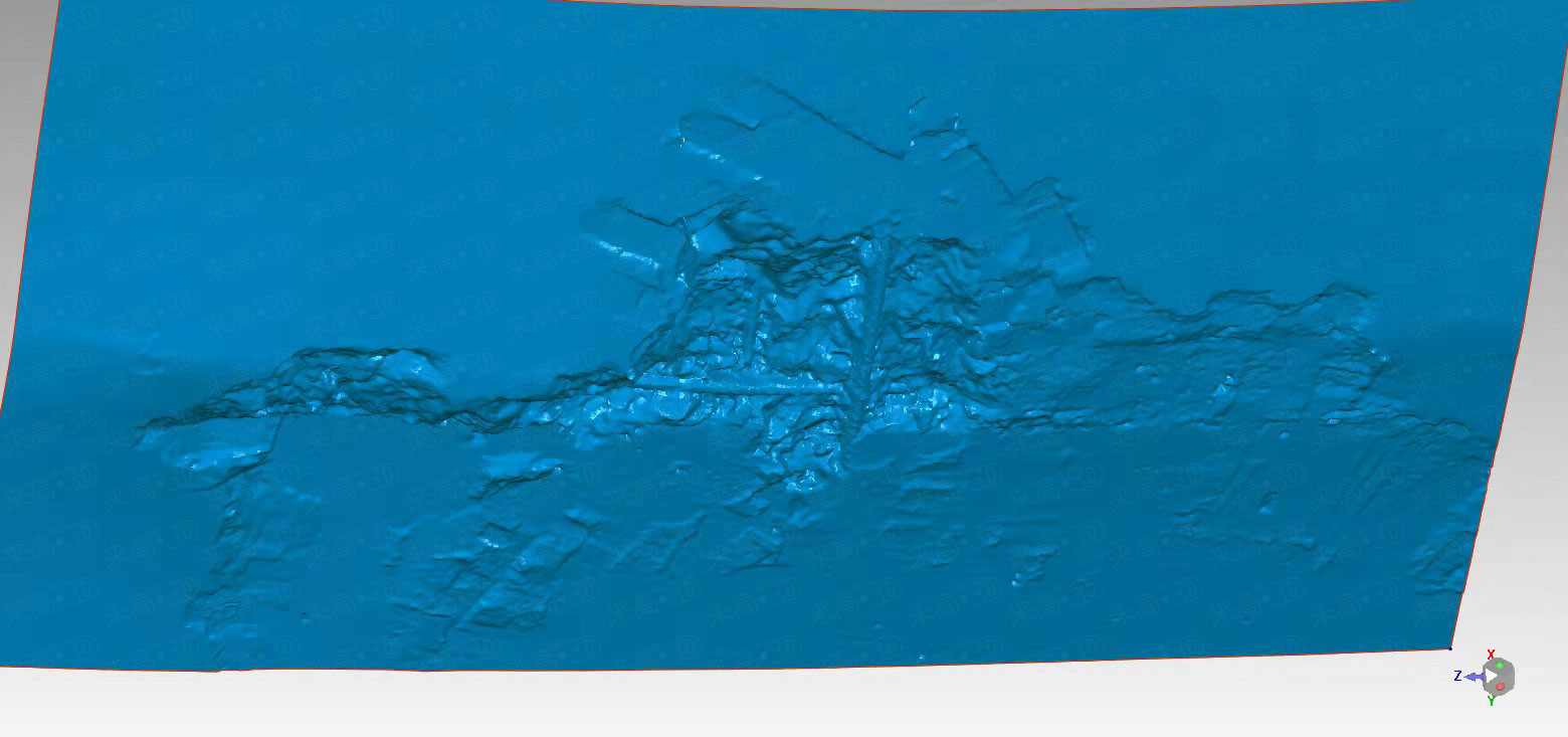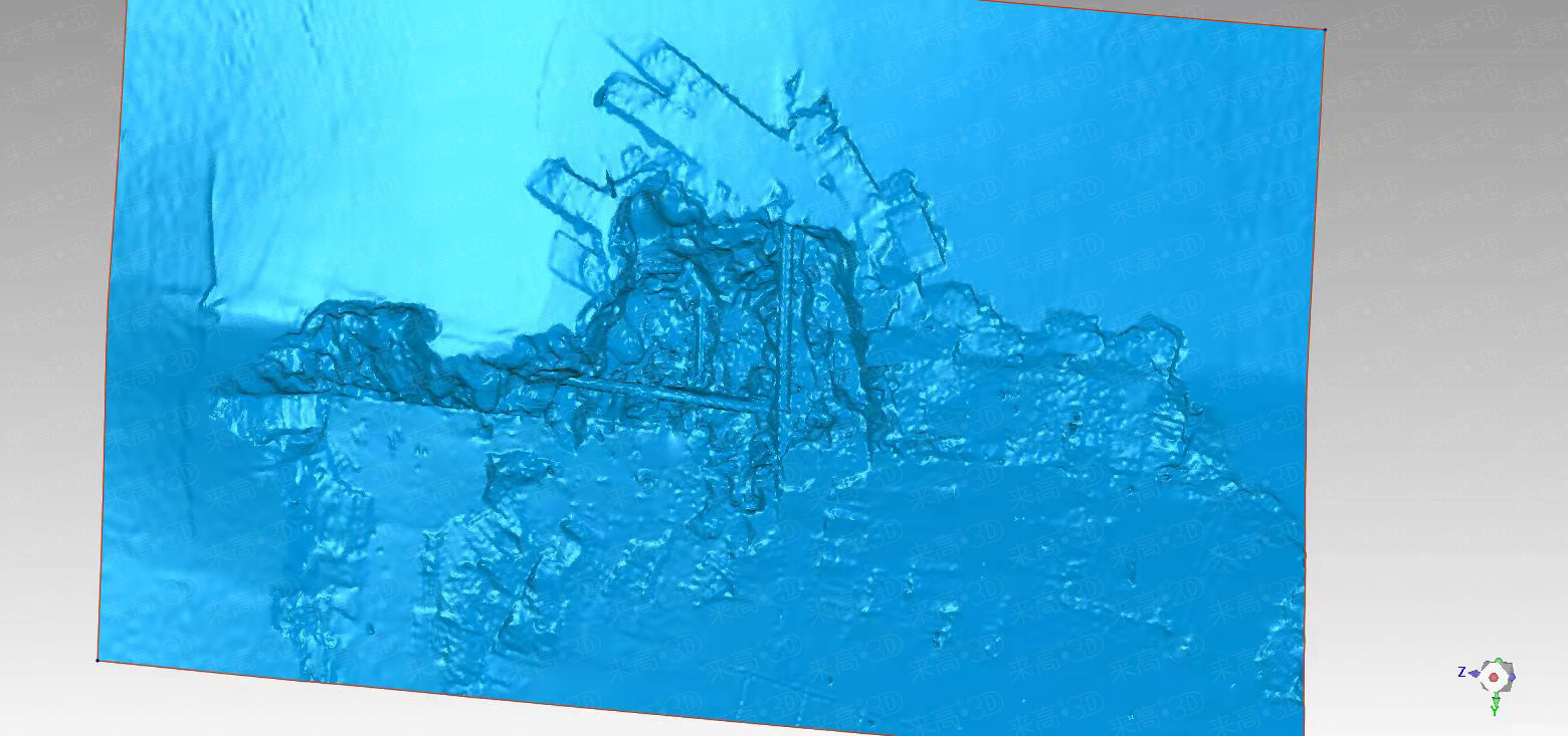 圖片為屋頂掃描后的三維數據,可以清楚的看到掃描結果還原了屋頂的塌陷以及墻皮脫落現象。