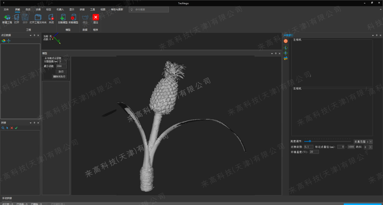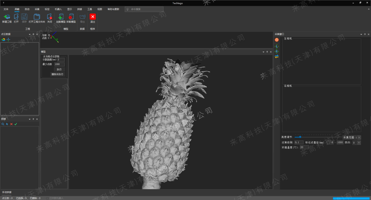 針對菠蘿表面不易上點的問題,來高科技通過更改Techlego2023軟件專有的參數設置,增加三維點云數據上點能力,從而得到更加詳盡和準確的數據模型。