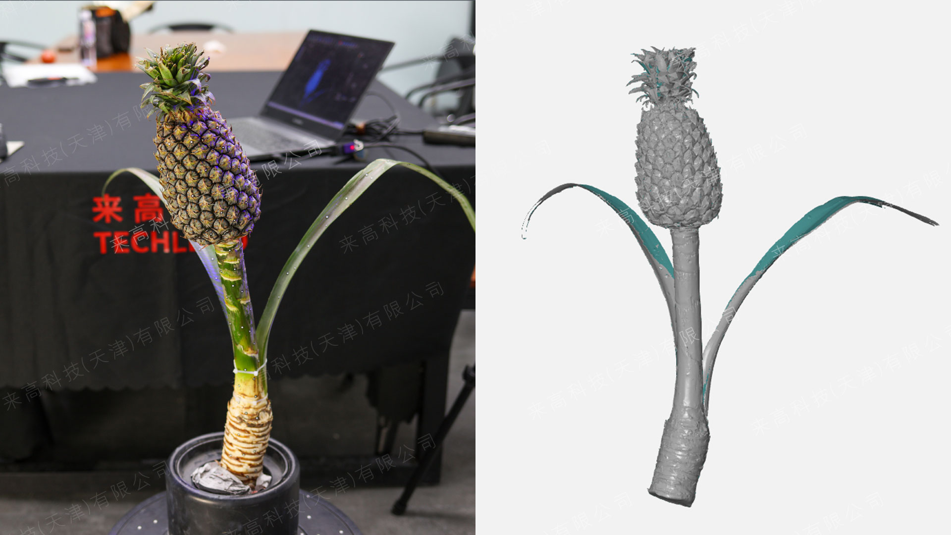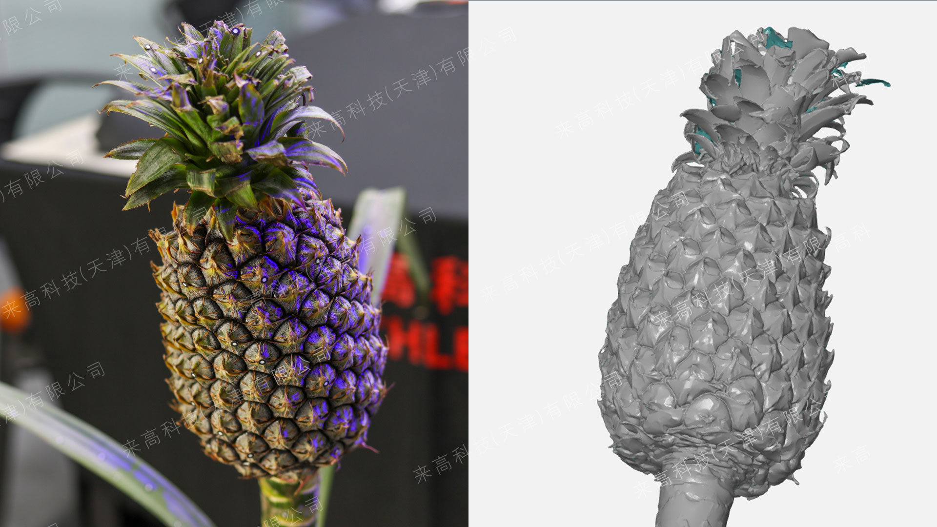 來高科技使用高精度G1Q對菠蘿多角度、準確地掃描,能夠高精度和高效率地獲得菠蘿的三維點云模型數據。
