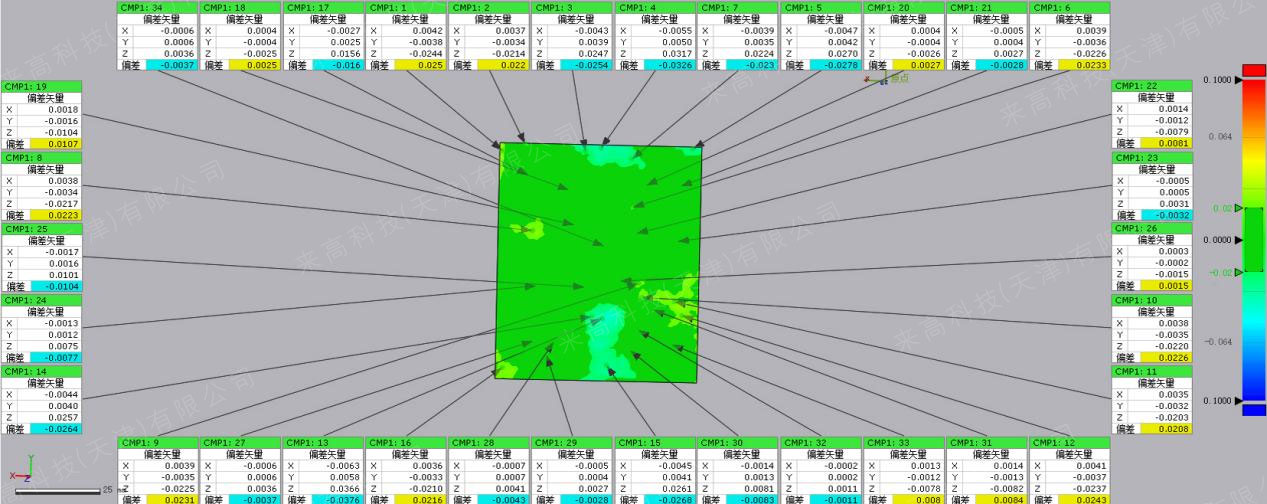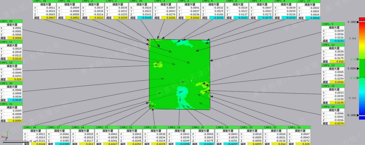 產(chǎn)品訴求:三維掃描精密陶瓷薄片,提供色譜高度圖,標注多點翹曲偏差