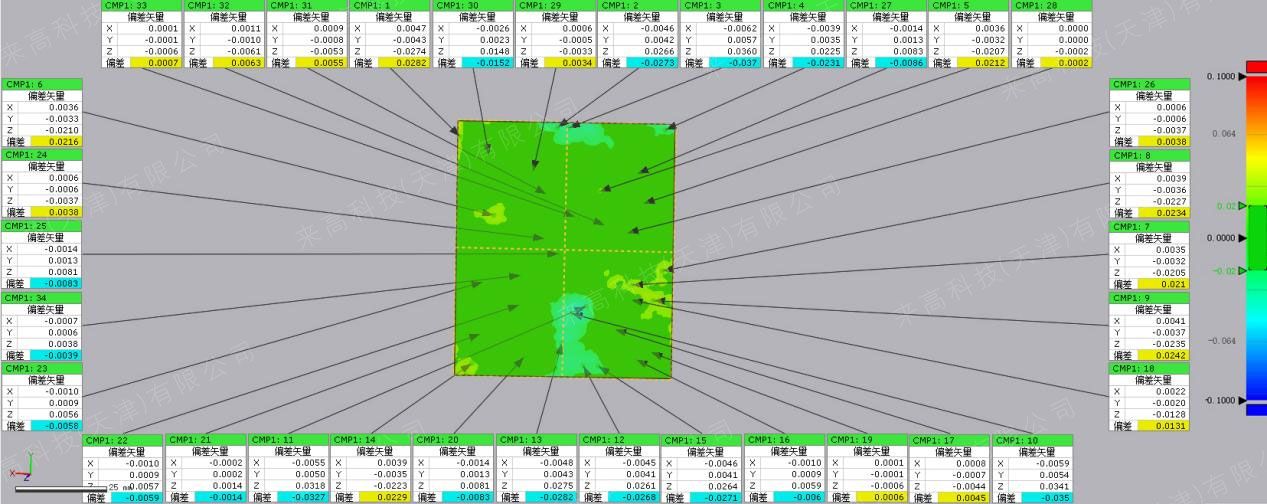通過對整片樣品劃痕面的翹曲進行多點重復(fù)測試,可以有效驗證掃描的一致性,確保檢測結(jié)果的可靠性。三維掃描儀高精度點云數(shù)據(jù)采集算法和三維檢測軟件強大的數(shù)據(jù)分析能力,為陶瓷薄片的平面度檢測提供了可靠的技術(shù)支持。