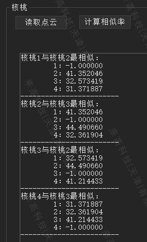 通過對核桃的三維掃描數(shù)據(jù)進(jìn)行分析判斷,根據(jù)多組數(shù)據(jù)進(jìn)行綜合評判。判斷出1與234進(jìn)行比較的時候,1和2相似度無限接近;2與134進(jìn)行比較的時候,2和3相似度無限接近;3與124進(jìn)行比較的時候,3和2相似度無限接近;4與123進(jìn)行比較的時候,4和3的相似度無限接近。