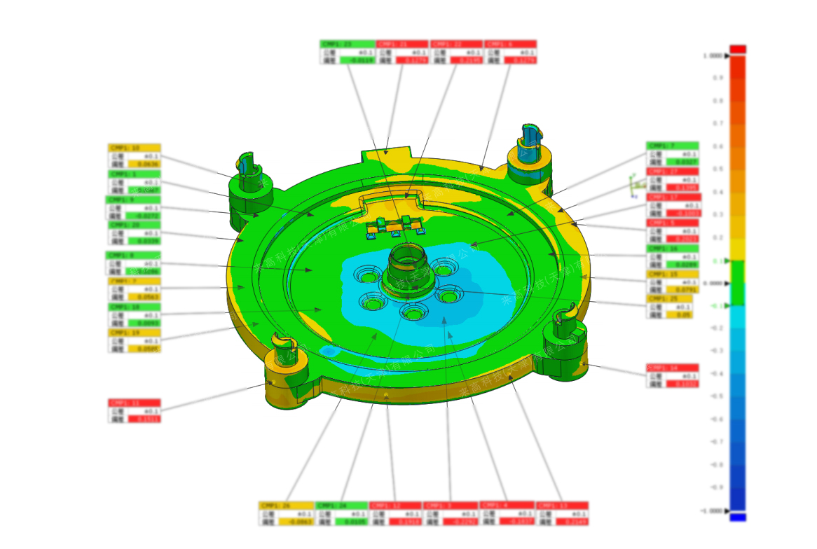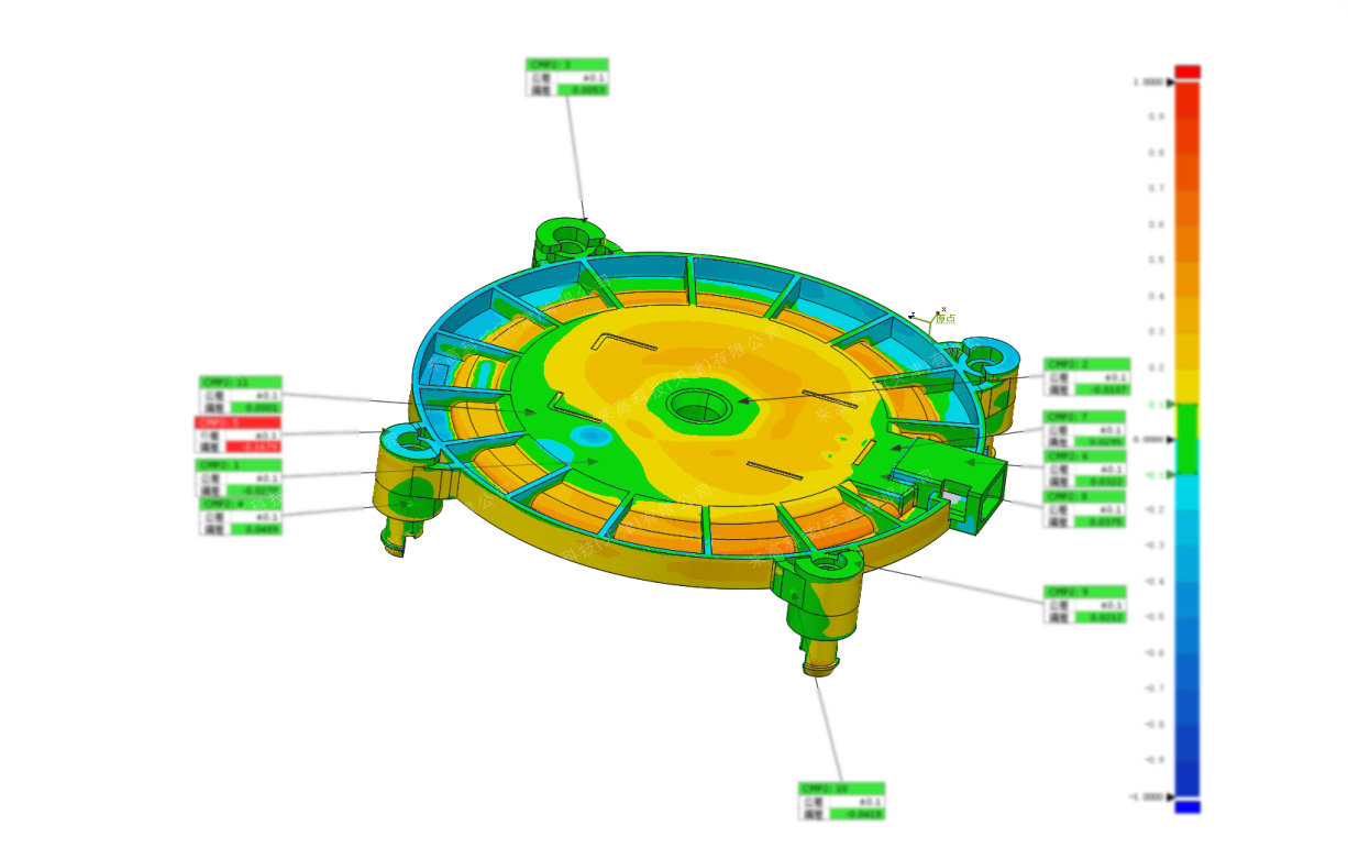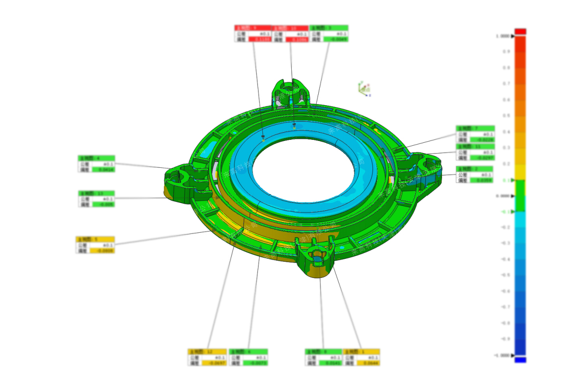 最后,將處理好的三維模型面片數據導入專業的三維檢測軟件,與原始設計模型進行比對,從而得出準確的檢測結果。