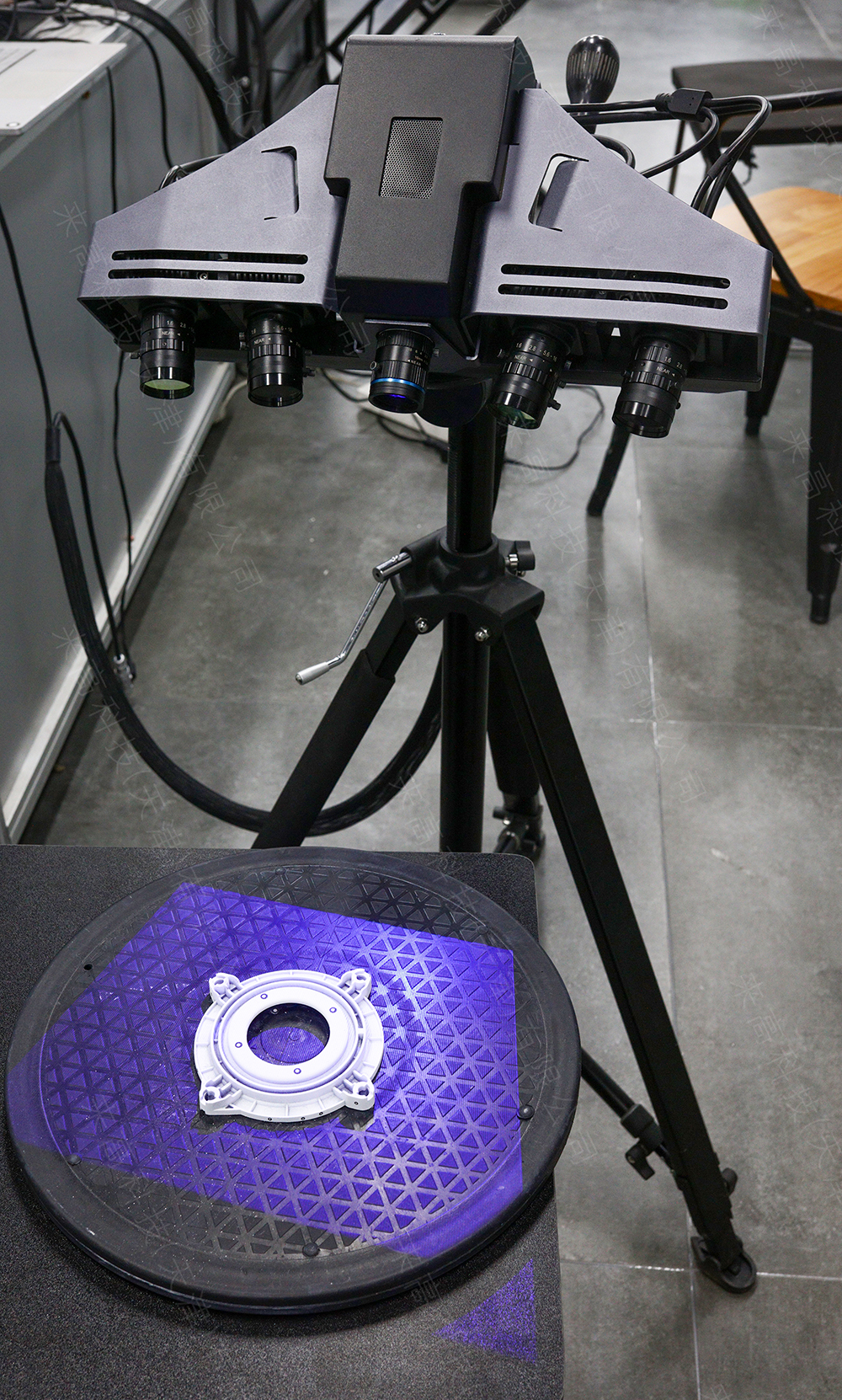 鑒于鼓風機頂部外殼檢測過程中對精度和掃描質量的高標準要求,來高科技選擇i9(1200萬像素)高精度三維掃描儀對該部件三維掃描。