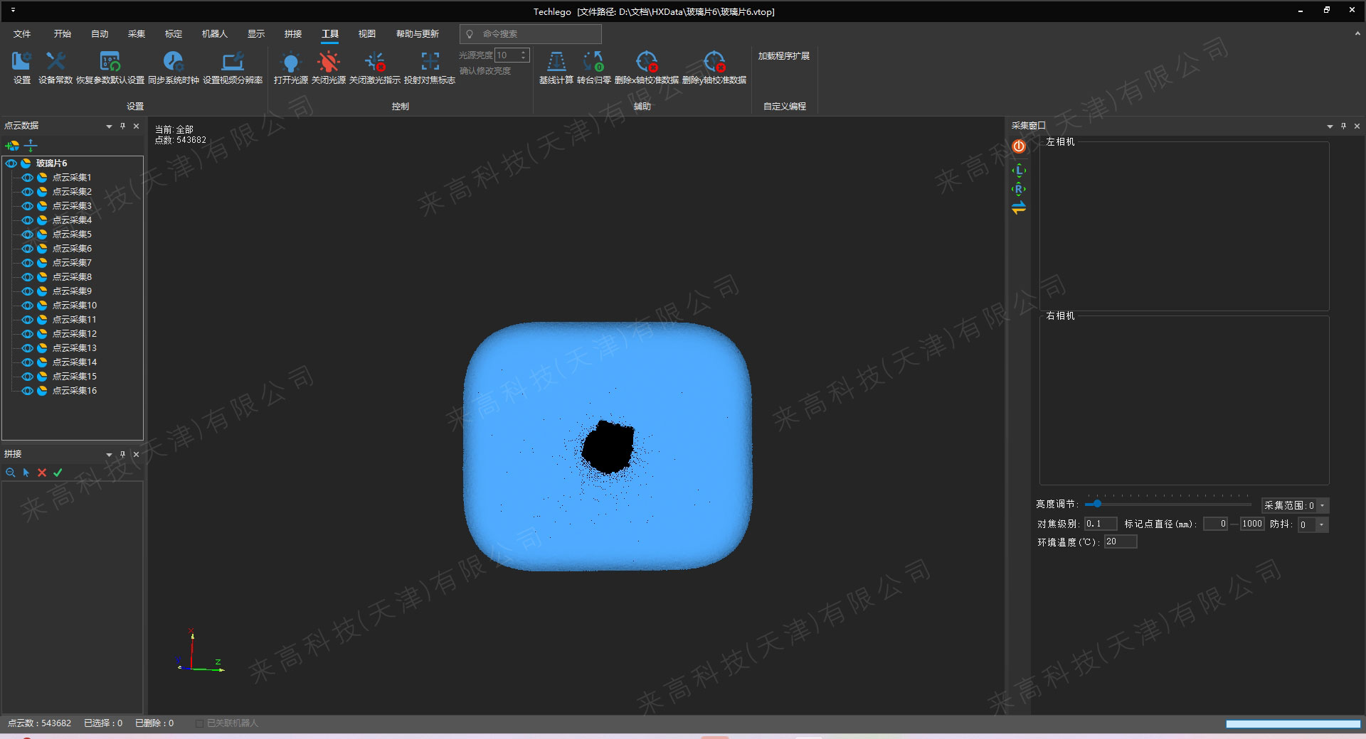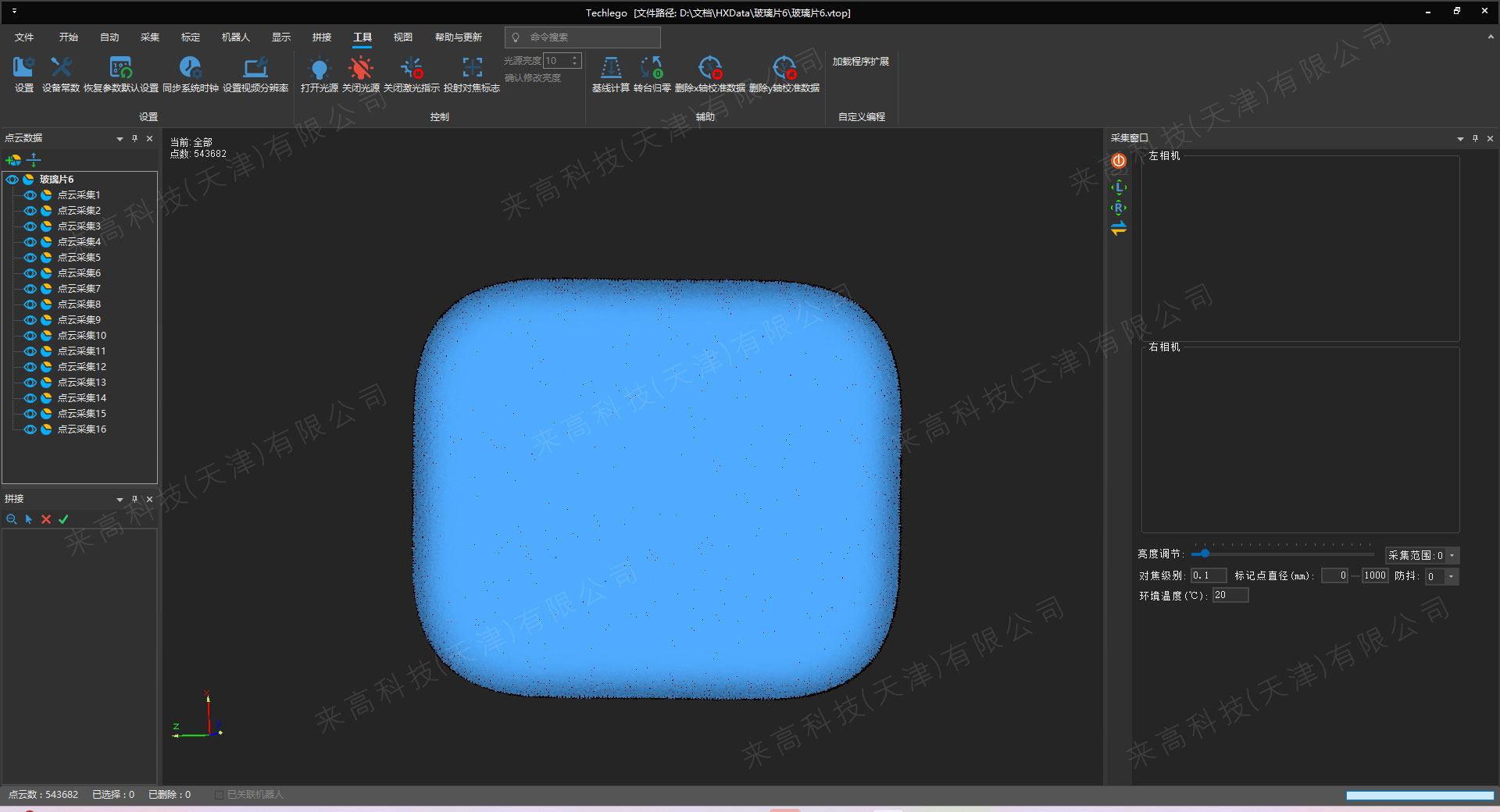 本案例是一款結構輕薄且尺寸較小的玻璃片。由于該樣品的特性,傳統測量方法難以實現快速準確的檢測,為了滿足客戶對三維模型掃描及全尺寸檢測的需求,因此采用了來高(天津)科技有限公司提供的G1Q型號三維掃描儀及其配套軟件Techlego2024。