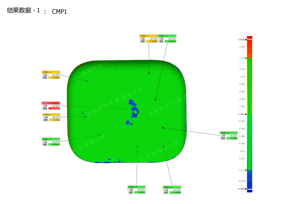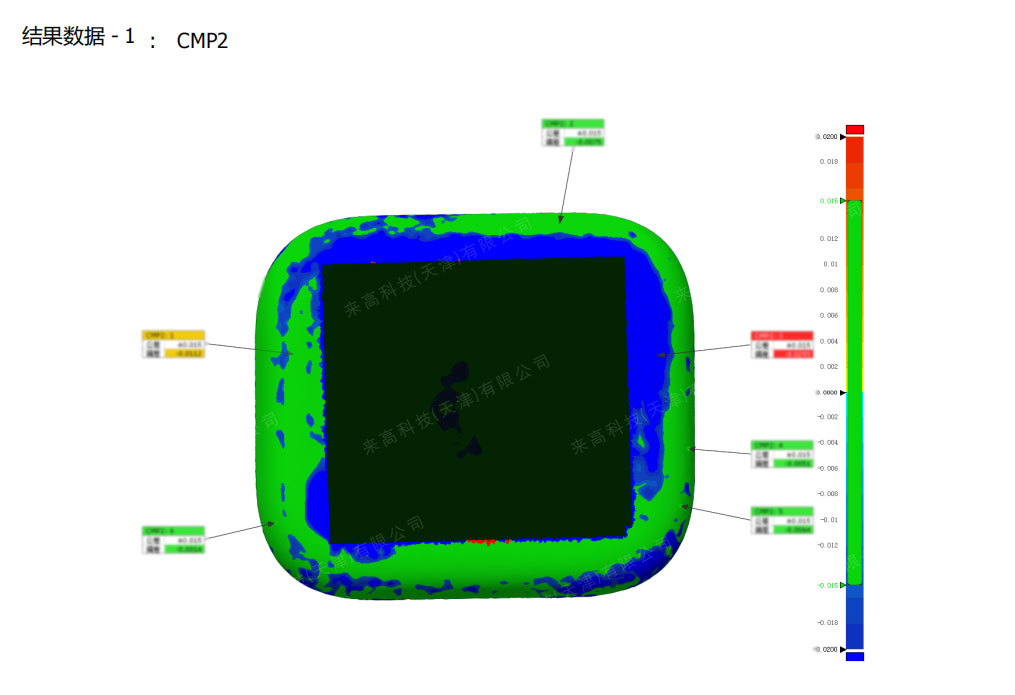 隨后,利用專業軟件將實際掃描結果與設計數模對齊,生成彩虹色譜圖以直觀展示兩者之間的偏差情況,從而判斷生產出的產品是否符合既定標準。