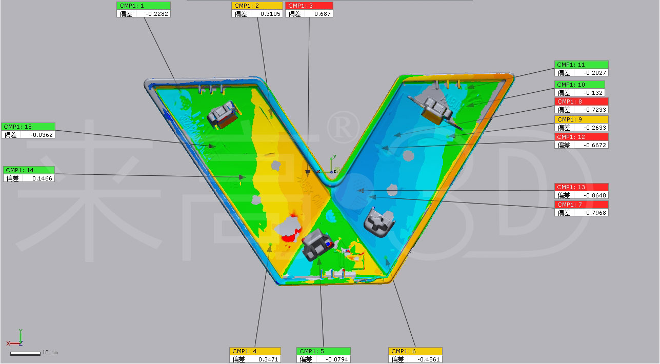 將獲取的三維模型數據導入檢測軟件中,與標準數模進行對比,通過色譜圖直觀展示差異,判斷產品質量是否符合標準。