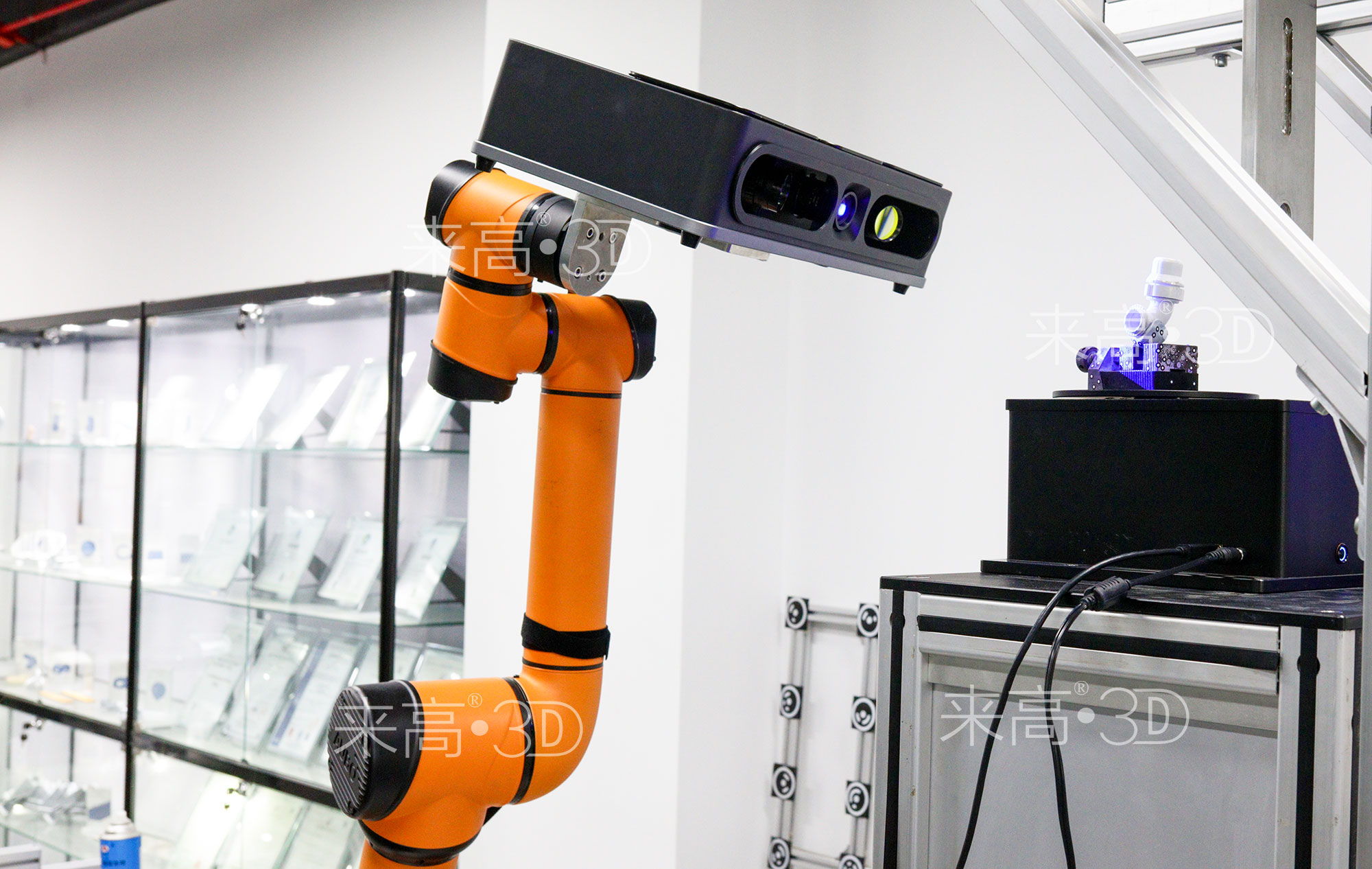 G5Q三維掃描儀,結合六軸協作機器人和單軸轉臺,通過不同角度掃描彎管,可以獲取高質量完整三維數據,用于全尺寸檢測。