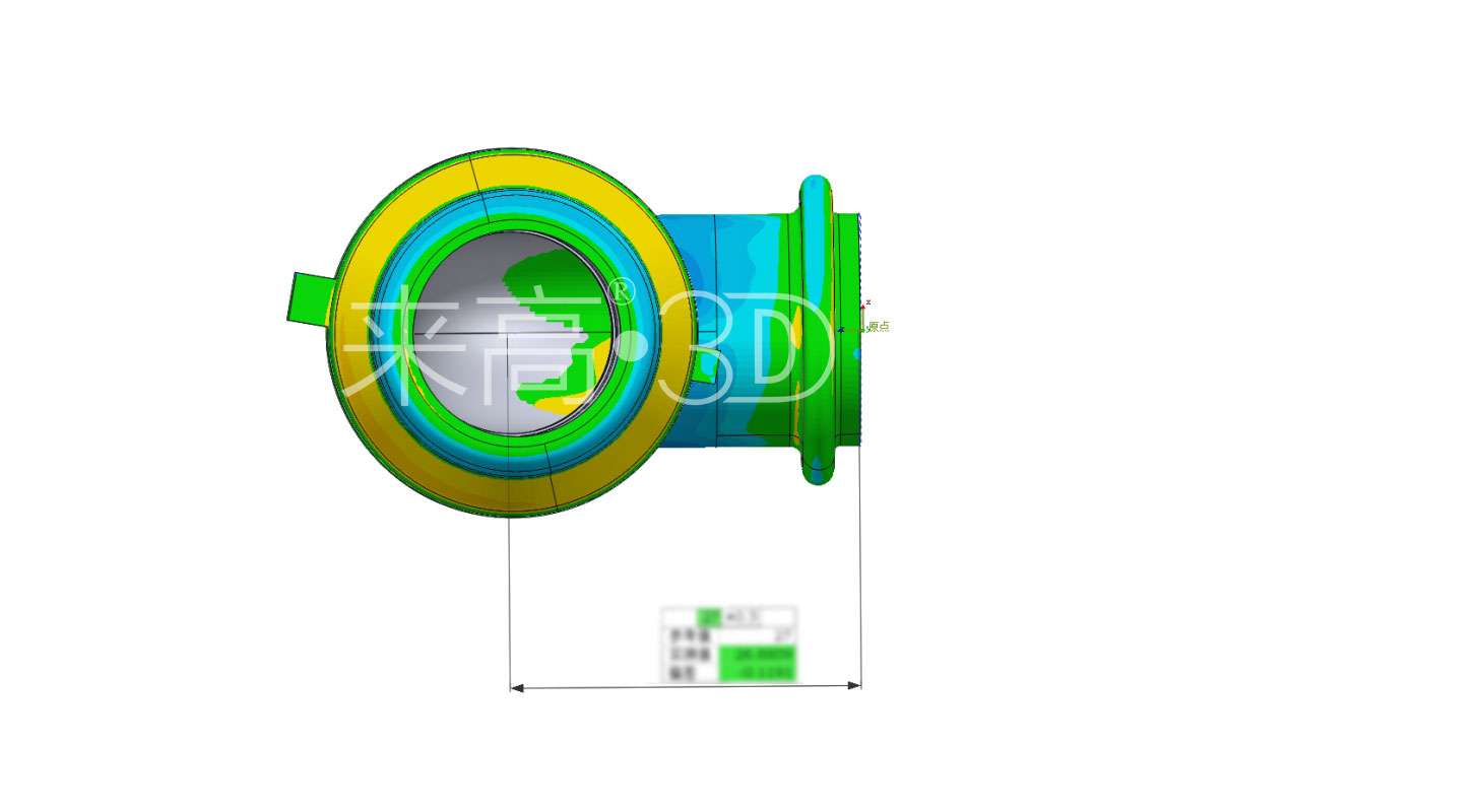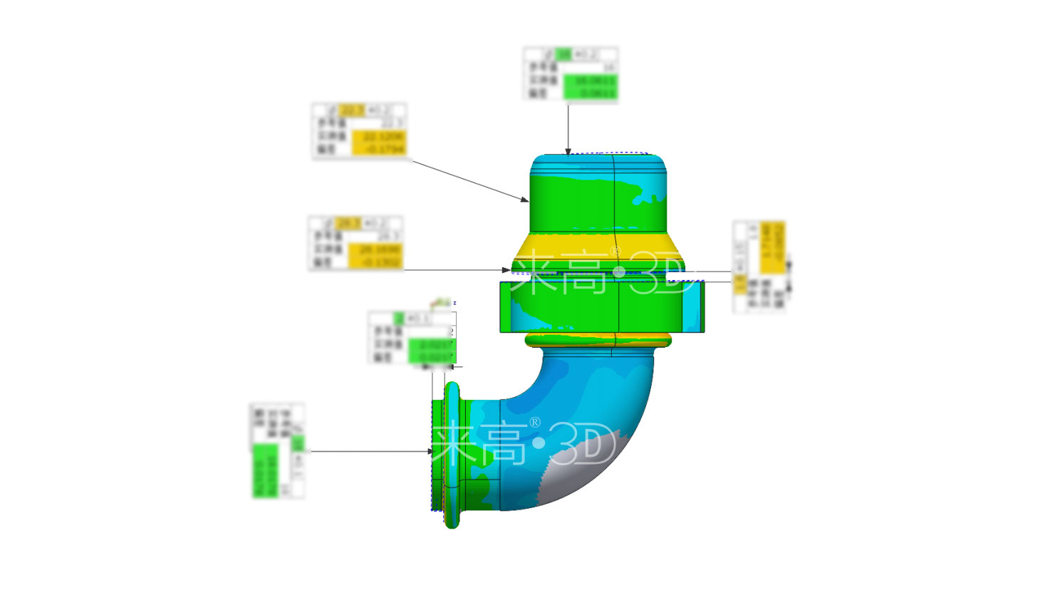 根據三維掃描數據與CAD設計數據之間的對比分析,可以直觀查看鋁合金彎管加工誤差;通過預設定的檢測模版,實現一鍵式出檢測報告,大大提升了檢測效率,同時保證了檢測精度。